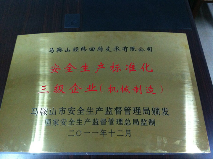 近年來(lái),馬鞍山經(jīng)緯回轉(zhuǎn)支承有限公司在安全生產(chǎn)管理工作中取得了巨大進(jìn)步,生產(chǎn)工作中嚴(yán)禁“三違”(即違章指揮、違章操作、違反勞動(dòng)紀(jì)律),安全狀況明顯改善,各類(lèi)事故明顯下降,安全生產(chǎn)文化得到社會(huì)各界的認(rèn)可,安全管理成就獲得市安監(jiān)局的肯定和表彰,在2010-2011年度馬鞍山市“安全生產(chǎn)標(biāo)準(zhǔn)化三級(jí)企業(yè)”創(chuàng)建評(píng)比中,成為首批達(dá)標(biāo)單位。之后每年會(huì)對(duì)本公司安全生產(chǎn)標(biāo)準(zhǔn)化的實(shí)施情況進(jìn)行一次自我評(píng)定,并形成自評(píng)報(bào)告,及時(shí)發(fā)現(xiàn)和解決生產(chǎn)中的安全問(wèn)題,持續(xù)改進(jìn),不斷提高安全生產(chǎn)水平,爭(zhēng)取為同類(lèi)企業(yè)有效開(kāi)展安全生產(chǎn)標(biāo)準(zhǔn)化工作樹(shù)立標(biāo)桿和樣板。
