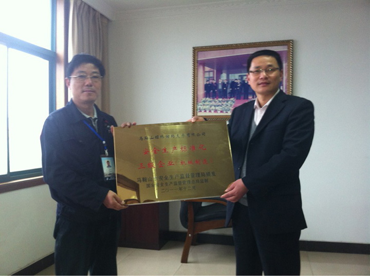 3月30日上午,安監(jiān)局代表授予我公司“安全生產(chǎn)標(biāo)準(zhǔn)化三級(jí)企業(yè)”標(biāo)牌和證書(shū),我公司張總等人代表接見(jiàn)并表示感謝其對(duì)我公司的認(rèn)可。