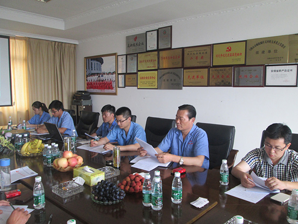 經(jīng)緯公司企業(yè)標(biāo)準(zhǔn)《回轉(zhuǎn)支承、雙模數(shù)二次包絡(luò)環(huán)面蝸桿副驅(qū)動(dòng)裝置》(送審討論稿)專題評(píng)審會(huì)議于2014年7月10日下午在公司三樓會(huì)議室召開,公司副總姚然強(qiáng)主持會(huì)議,技術(shù)研發(fā)中心全體科技人員出席會(huì)議。