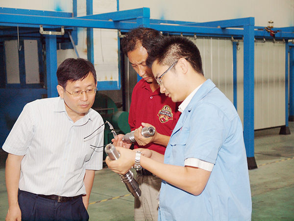魏先文副校長一行人員深入車間饒有興趣地觀摩了生產(chǎn)流水線,詳細地詢問和了解有關(guān)技術(shù)裝備、檢測手段、產(chǎn)品開發(fā)、市場銷路等情況,公司領(lǐng)導予以一一解答,魏校長對公司與安工大聯(lián)合研發(fā)的“雙模數(shù)二次包絡(luò)環(huán)面蝸桿副”十分贊賞。