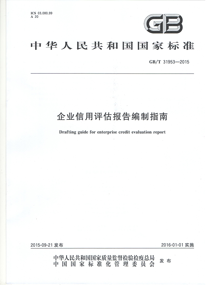 我司參與制定的《企業(yè)信用評(píng)估報(bào)告編制指南》以及《企業(yè)質(zhì)量信用報(bào)告編寫指南》GB/T國家標(biāo)準(zhǔn)將于2016年元旦起發(fā)布實(shí)施