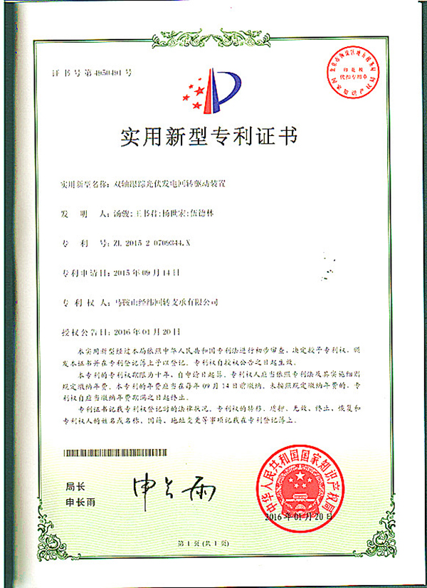 日前,經(jīng)緯公司研發(fā)的“雙軸跟蹤光伏發(fā)電回轉(zhuǎn)驅(qū)動(dòng)裝置”、“搶險(xiǎn)機(jī)器人用回轉(zhuǎn)驅(qū)動(dòng)”和“雷達(dá)用回轉(zhuǎn)驅(qū)動(dòng)裝置”同時(shí)獲得國家知識(shí)產(chǎn)權(quán)局專利授權(quán)。這是經(jīng)緯公司繼獲3項(xiàng)國家發(fā)明專利、12項(xiàng)實(shí)用新型專利之后,又?jǐn)孬@的3項(xiàng)最新專利。至此,經(jīng)緯公司所獲專利已達(dá)18項(xiàng)。