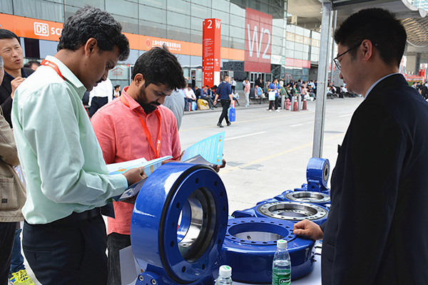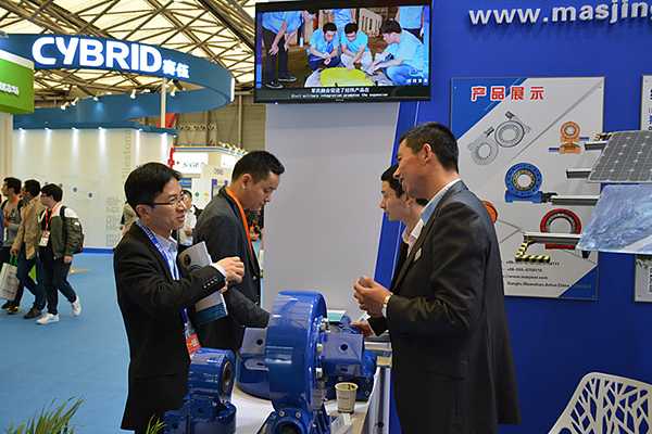 出其不意,是經(jīng)緯公司這次參展給觀展商帶來的深刻印象。現(xiàn)場可以看到,前來經(jīng)緯公司室內(nèi)室外兩地展區(qū)的客商絡(luò)繹不絕,他們都是被“經(jīng)緯智能跟蹤支架”和高精度跟蹤回轉(zhuǎn)減速器的專業(yè)、新奇吸引而來。室內(nèi)回轉(zhuǎn)驅(qū)動(dòng)展區(qū),3英寸、7英寸、9英寸、12英寸、14英寸和25英寸等數(shù)十臺(tái)臥、立式高精度跟蹤回轉(zhuǎn)減速機(jī)一字排開或?qū)嵗惭b在太陽能上,用途有裝載于重型機(jī)械的,有作用于光伏電站的,還有運(yùn)用于軍事雷達(dá)的,其中大多數(shù)均為新品首次展出,因此吸引了眾多國內(nèi)外觀眾和老客戶駐足觀看,并接二連三地向經(jīng)緯公司業(yè)務(wù)人員咨詢了解,商談合作事宜;室外光伏支架展區(qū),經(jīng)緯公司最新研制的光伏電站“經(jīng)緯智能跟蹤支架”系列產(chǎn)品更是勁爆全場,顛覆眾人想象。19日首展當(dāng)天,就有河南、浙江、北京和印度等國內(nèi)外客商主動(dòng)前來洽談,他們在聽取公司專家對經(jīng)緯跟蹤支架各項(xiàng)優(yōu)越性能詳細(xì)講解后,都極為驚嘆。河南新鄉(xiāng)一位多年從事光伏電站建設(shè)的客商由衷地說,第一次看到這種光伏支架,沒想到能做到這樣先進(jìn),還有北京一位客戶興致更高,當(dāng)天專程兩次前來,就合作事宜展開遞進(jìn)式深入交流。第一天出其不意的“亮相”注定了第二天更加忙碌,20號(hào)展館一開門,僅經(jīng)緯室外展區(qū)就接連迎來了韓國、泰國、越南等國外客商和國內(nèi)廈門、上海等地公司代表,他們聚集在展區(qū)內(nèi),或仰視集裝箱上的光伏跟蹤支架,或低頭翻閱產(chǎn)品資料,或用各自語言進(jìn)行相互交流,雖然有些語言不盡相通,但從所有人的表情和眼神中可以明顯看出驚奇和贊嘆。上門洽談?wù)吒悄阄闯T我欲登場,高峰時(shí)臨時(shí)會(huì)客室突顯擁擠,經(jīng)緯工作人員就干脆將部分洽談桌移至室外接待,一些過路觀眾看到這番情景,也紛紛近前圍觀一探究竟。世界知名制造商上海振華重工集團(tuán)也對經(jīng)緯產(chǎn)品表現(xiàn)出濃厚興趣,集團(tuán)領(lǐng)導(dǎo)專程趕來,與總經(jīng)理?xiàng)钍篮赀M(jìn)行會(huì)談,商討合作大計(jì),會(huì)客室內(nèi)外至始至終一片繁忙景象。雖然來之前經(jīng)緯公司也預(yù)判跟蹤支架產(chǎn)品一定會(huì)吸引不少客商,但出現(xiàn)這樣接踵而至、應(yīng)接不暇的轟動(dòng)效應(yīng),真乃始料未及。僅20號(hào)一天,經(jīng)緯公司跟蹤支架展區(qū)就接待訪客10多批次。難怪在接待短暫間隙,楊世宏總經(jīng)理簡短而高興地對在場員工說,人太多,人太多!