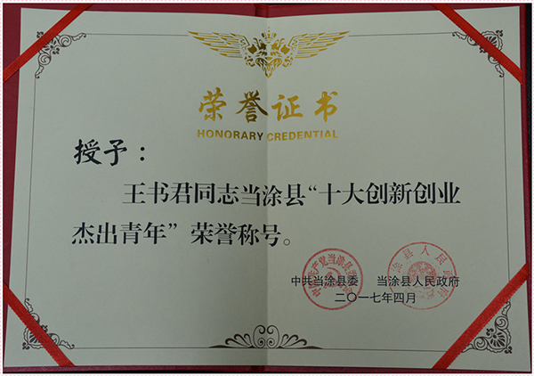 經(jīng)緯公司王書(shū)君榮獲當(dāng)涂縣“十大創(chuàng)新創(chuàng)業(yè)杰出青年”稱號(hào)