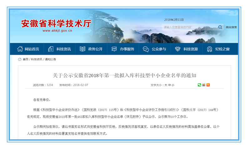 根據(jù)《科技型中小企業(yè)評價辦法》和《科技型中小企業(yè)評價工作指引(試行)》有關規(guī)定,日前,安徽省科技廳官方網(wǎng)站公布了2018年第一批擬入庫科技型中小企業(yè)名錄,經(jīng)緯公司榜上有名。