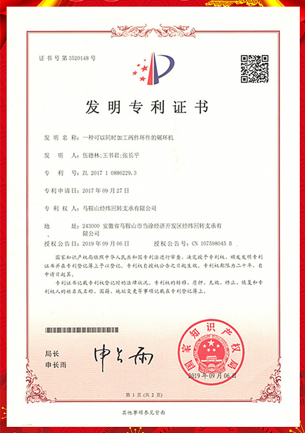 本次獲得授權(quán)的國家發(fā)明專利是:“一種可以同時加工兩種環(huán)件的碾環(huán)機(jī)”,實用新型專利分別是:“內(nèi)滾道中心距測量量桿”、“外滾道中心距測量量桿”、“一種回轉(zhuǎn)減速機(jī)壽命試驗裝置”、“一種可自潤滑軸承式立式減速機(jī)”、“一種行星減速機(jī)”、“一種用于減速機(jī)的智能裝配生產(chǎn)線”以及“一種自調(diào)心零間隙跟蹤機(jī)構(gòu)”,8項專利成果均有經(jīng)緯公司技術(shù)人員自主研發(fā)完成。