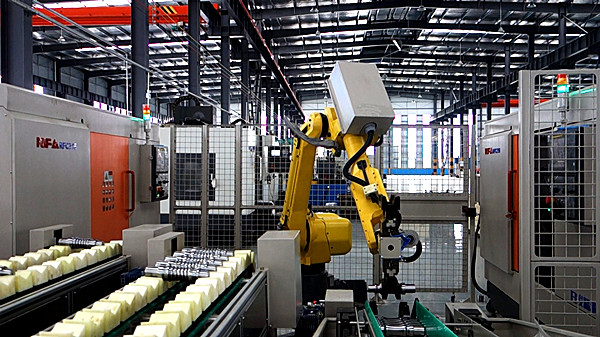 蝸桿自動線分別由FANUC機器人、數(shù)控臥式車床RFCZ16、料機等六臺設(shè)備組成,設(shè)備之間相互通信,可實現(xiàn)上料、加工、下料自動化運行,滿足整線節(jié)拍要求,可有效提高生產(chǎn)率和產(chǎn)品質(zhì)量,具有顯著經(jīng)濟效益。