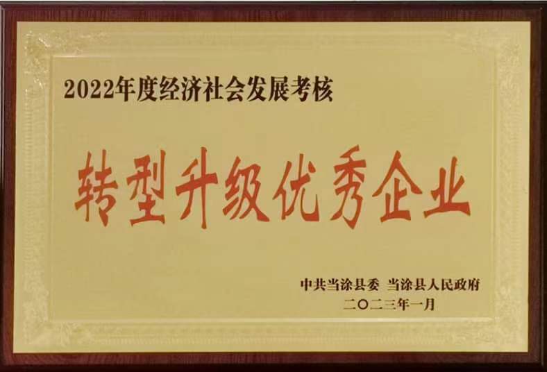 當(dāng)涂縣”轉(zhuǎn)型升級(jí)優(yōu)秀企業(yè)“稱號(hào)