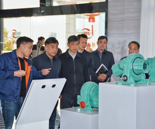 【圖為丁毅參觀經(jīng)緯光伏回轉(zhuǎn)減速機(jī)】