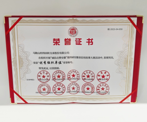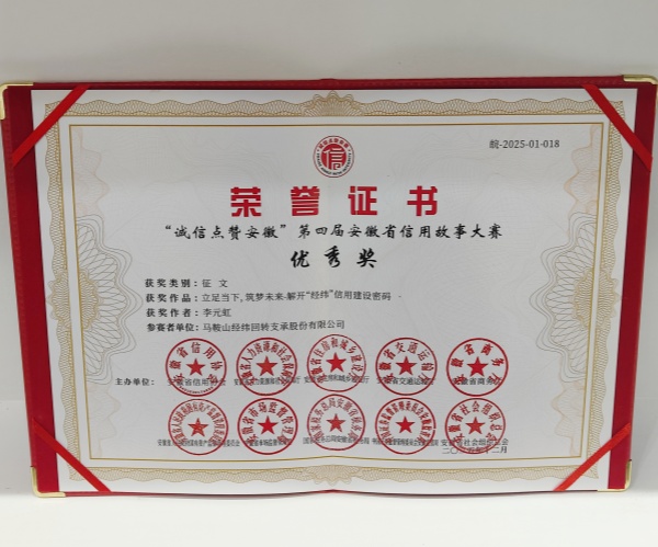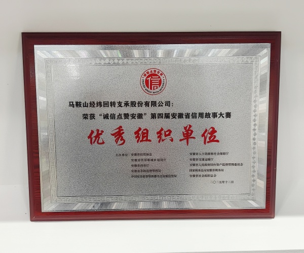 近日,由安徽省發(fā)展和改革委、人行安徽省分行指導,省信用協(xié)會等十余家單位聯(lián)合主辦的“誠信點贊安徽”第四屆安徽省信用故事大賽圓滿落幕。馬鞍山經(jīng)緯回轉支承股份有限公司憑借在信用建設領域的扎實實踐與積極參與,榮獲“優(yōu)秀組織單位獎”;經(jīng)緯總經(jīng)辦李元虹撰寫的征文《立足當下,筑夢未來|解開“經(jīng)緯”信用建設密碼》經(jīng)層層篩選,從近400幅參賽作品中脫穎而出,榮獲“優(yōu)秀獎”,雙獎加身彰顯企業(yè)誠信底色。